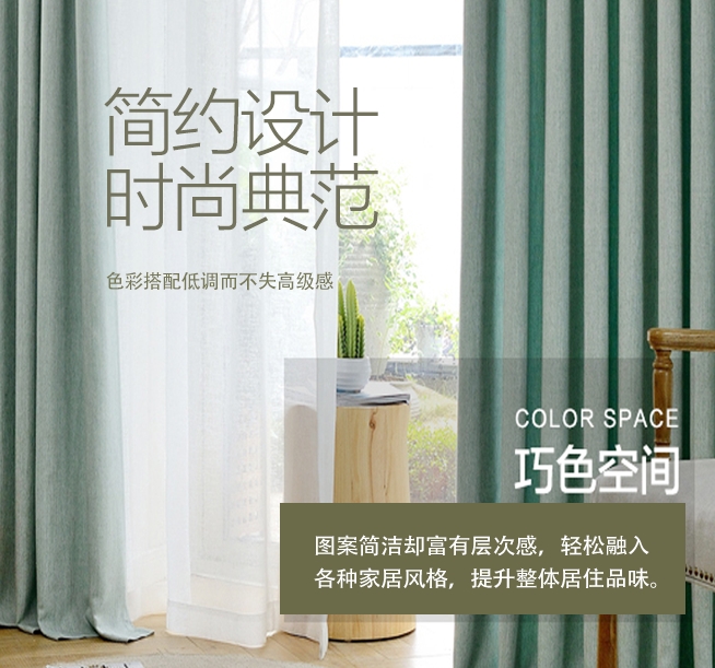 产品描述: 【简约风尚,窗帘新主张】 在繁忙的都市生活中, 寻找一片宁静与雅致的空间, 让心灵得以栖息。 我们的窗帘, 不仅仅是遮光避尘的工具, 更是家居美学的点睛之笔, 简约而不失时尚, 为您的居家环境增添一抹独特的风景线。 无论是晨光初照还是夕阳西下, 都能营造出温馨而不失明亮的氛围, 让家的每一个角落都充满温馨与和谐。 家,是心灵的港湾, 而窗帘,则是这港湾中最温柔的守护者。