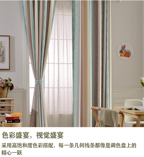 产品描述: 在这个追求独特与自我表达的时代, 一款窗帘不仅仅是为了遮光避尘, 它更是家居装饰中的艺术品, 是个性与品味的展现。 我们的几何条纹色彩窗帘, 正是为此而生! 它不仅仅是一扇窗的装饰, 更是空间氛围的魔术师, 轻松营造出时尚、前卫的居住环境。 无论是晨光初照还是夕阳西下, 都能让你的家充满温馨与创意。